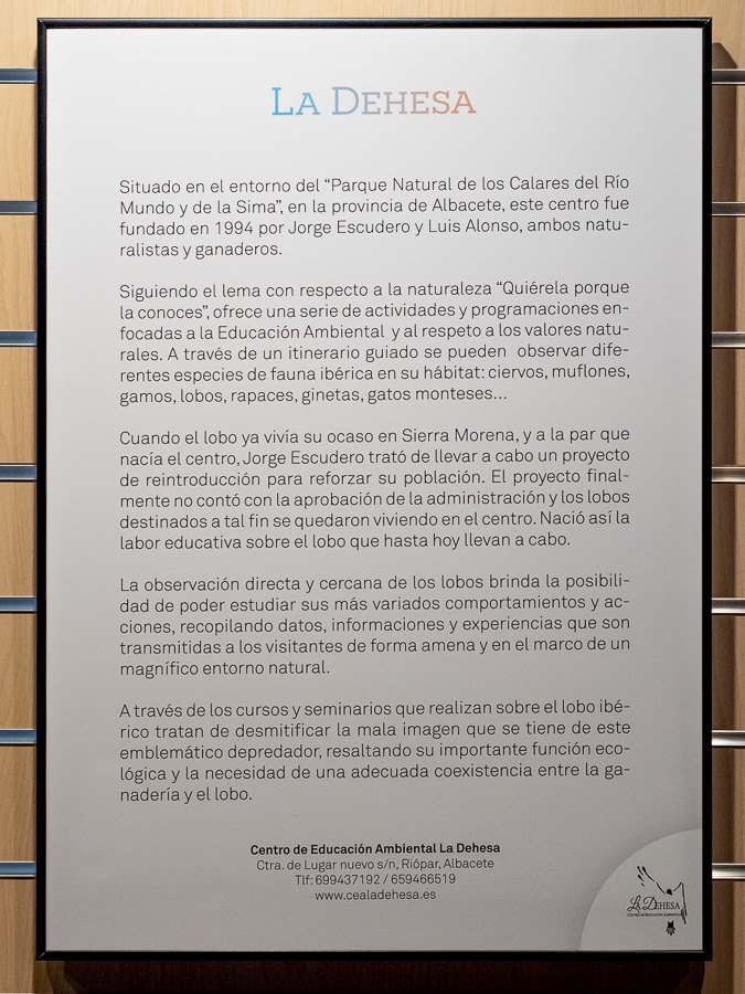 Tras su exitosa exhibición en el Museo Nacional de Ciencias Naturales de Madrid (93.000 visitantes), y gran repercusión en los medios de comunicación, espero que este proyecto sea acogido allí donde se valore la protección de la Naturaleza, la misma que en la noche reclama su arrebatada libertad a través del aullido del lobo.