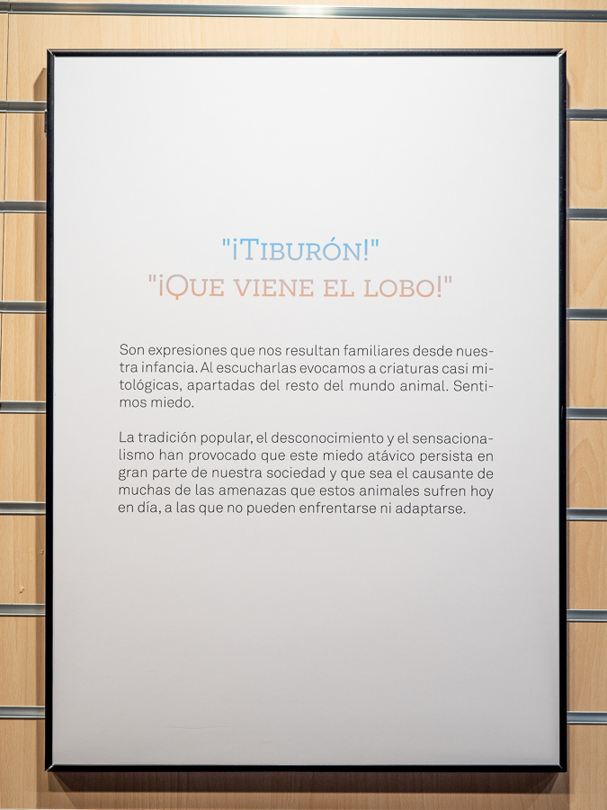 • 5 paneles explicativos a 50 x 70 cm (WWF, CEA La Dehesa, ¿Bestias sanguinarias?, ¡Tiburón, que viene el lobo!, Mi